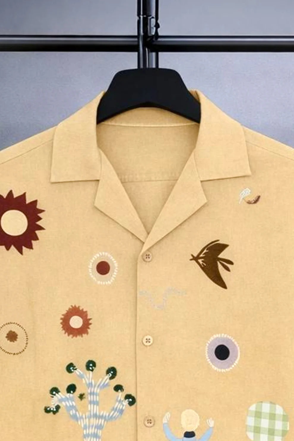 Stand out with subtle elegance in this premium cream art-print men’s co-ord set.